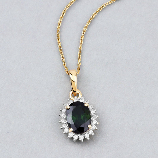 1.39 Carat Genuine Green Tourmaline and White Diamond 14K Yellow Gold Pendant