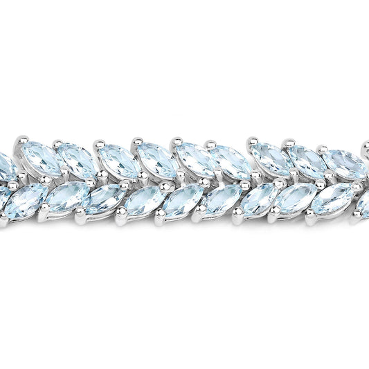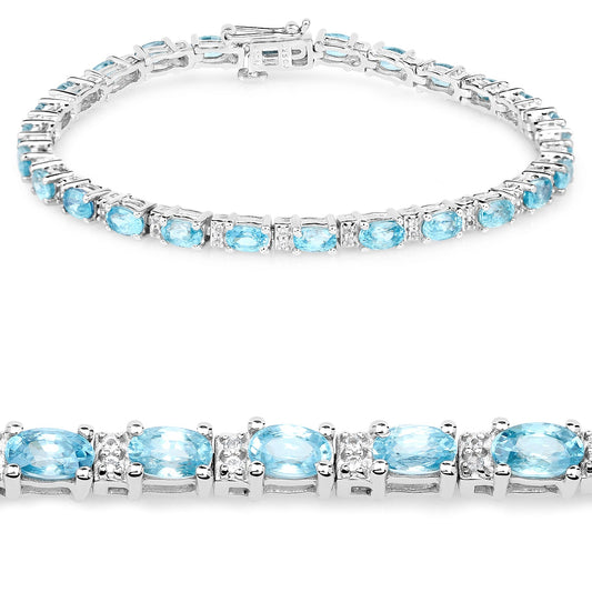 8.84 Carat Genuine Blue Zircon and Topaz White .925 Sterling Silver Bracelet
