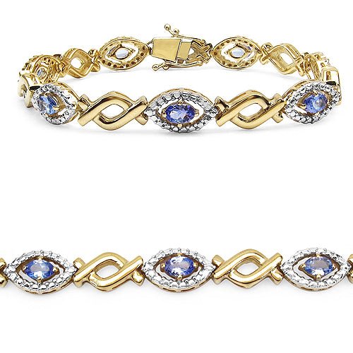 14K Yellow Gold Plated 3.08 Carat Genuine Tanzanite .925 Sterling Silver Bracelet