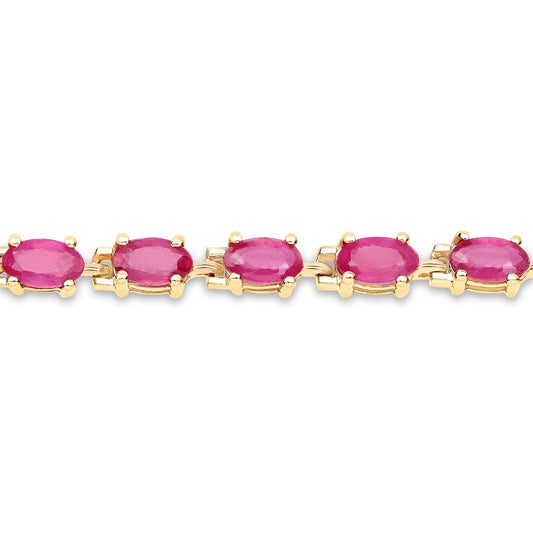14K Yellow Gold Plated 18.32 Carat Genuine Ruby .925 Sterling Silver Bracelet