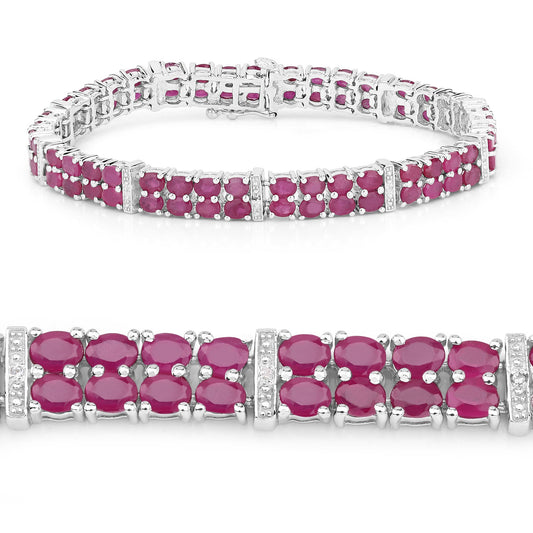 17.65 Carat Glass Filled Ruby and White Topaz .925 Sterling Silver Bracelet