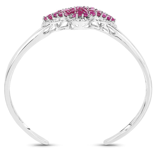 7.38 Carat Glass Filled Ruby, Ruby and White Topaz .925 Sterling Silver Bangle