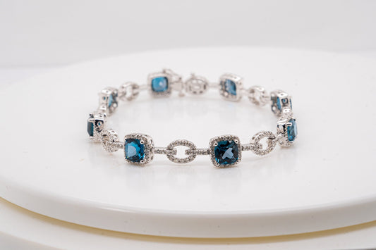 Blue Topaz & Natural Diamonds Bracelet in 14K White Gold Bracelet