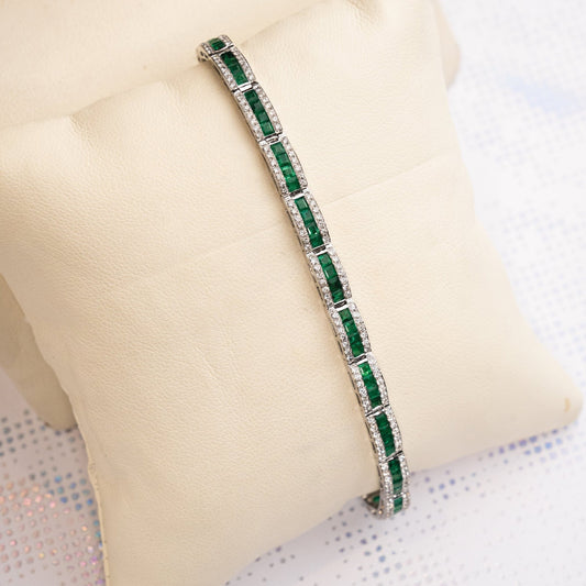 Emerald and Natural Diamond Tennis Bracelet in 18k Solid White Gold