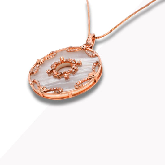 14K Rose Gold Pearl Necklace With Mother Of Pearl Diamond 0.25ct
