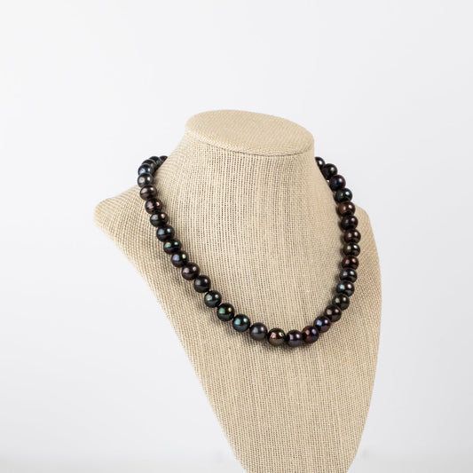 7mm Black Pearl Necklace With Silver Magnetic Clasp