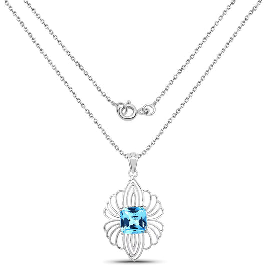 8.18 Carat Genuine Swiss Blue Topaz .925 Sterling Silver Pendant