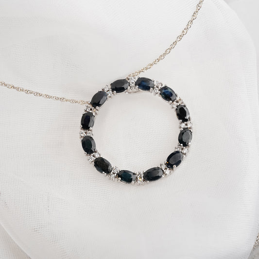 Classic Oval Blue Sapphire & Diamond Necklace in 18K White Gold