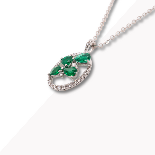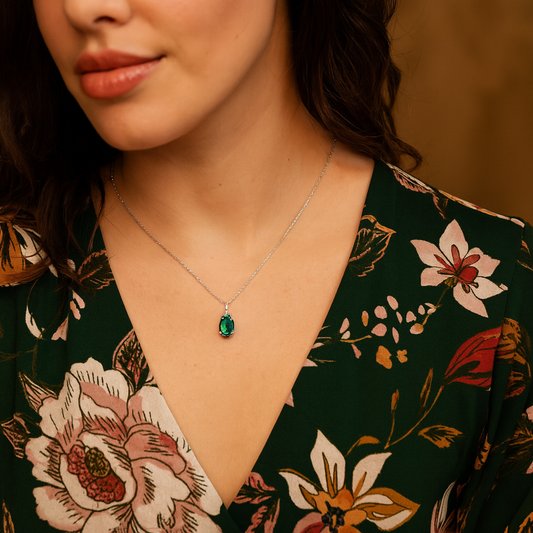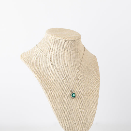 Pear Shape Emerald and Diamond Drop With Halo Pendant in 14kt White Gold