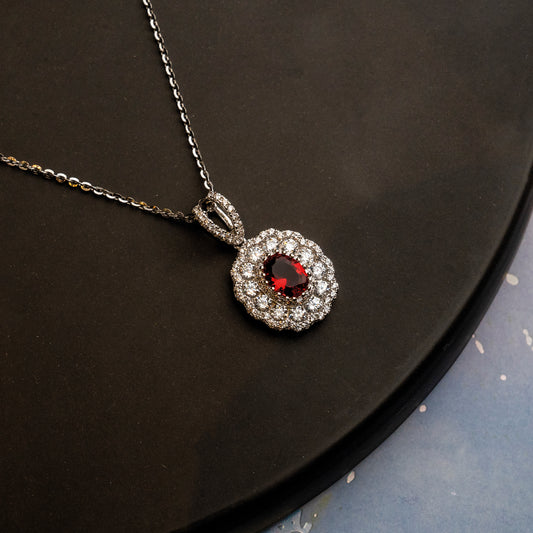 Natural Ruby & Natural Diamonds Halo Pendant in 18K White Gold