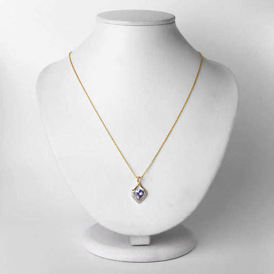 1.11 Carat Genuine Tanzanite and White Diamond .925 Sterling Silver Pendant