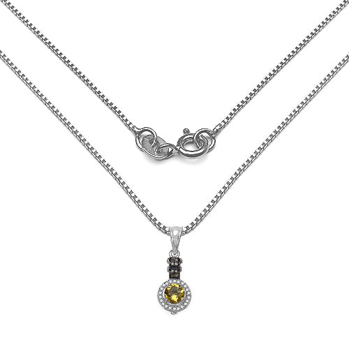 1.00 Carat Genuine Citrine, Champagne Diamond & White Diamond .925 Sterling Silver Pendant