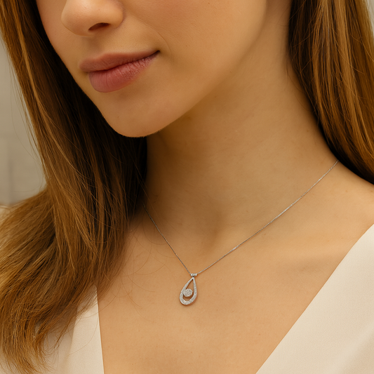Pendentif en argent sterling avec diamant dansant et chaîne en zircone cubique