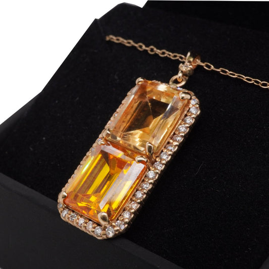 Pendentif en or 14 carats avec 2 pierres de citrine et 40 LBD comme pierres latérales