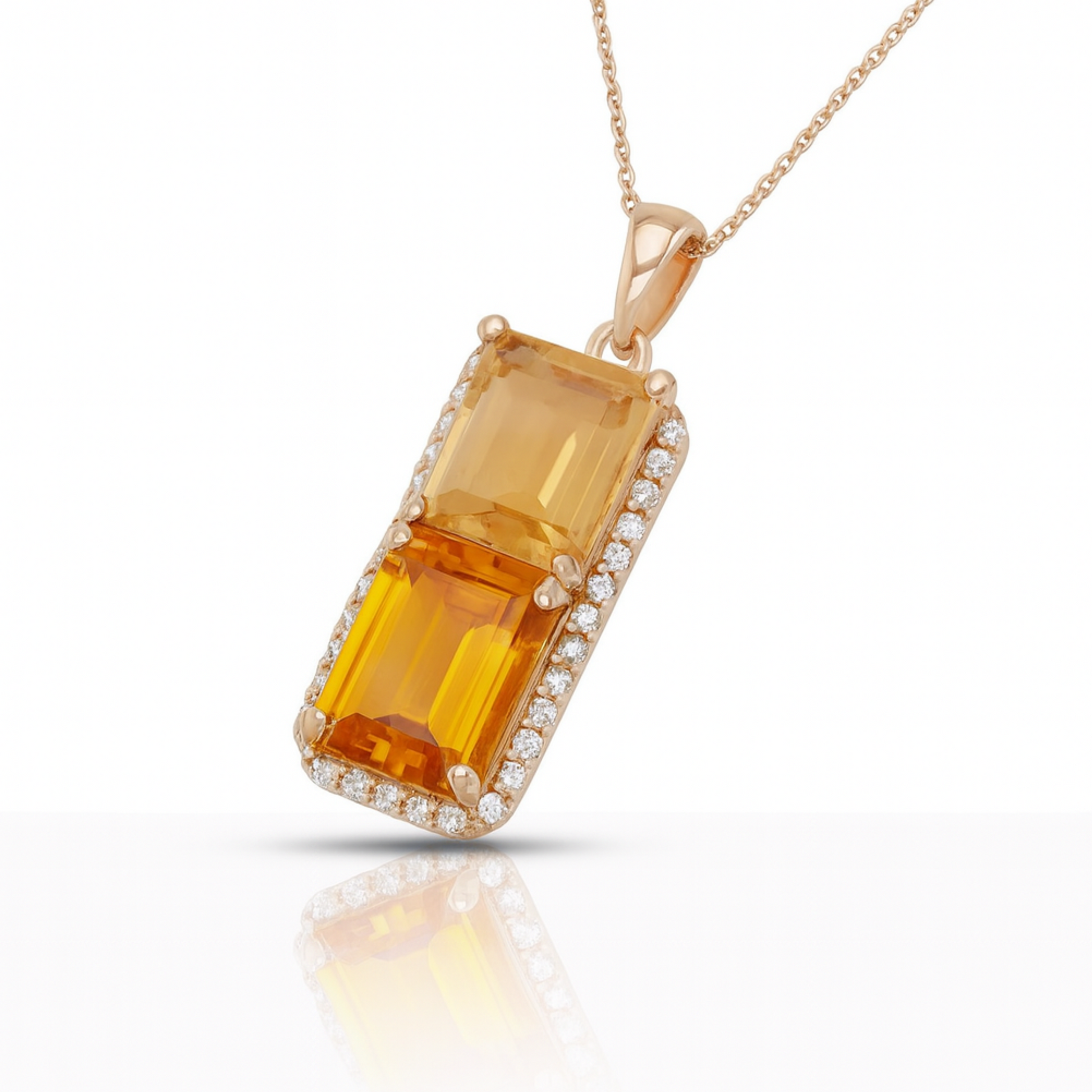 Pendentif en or 14 carats avec 2 pierres de citrine et 40 LBD comme pierres latérales