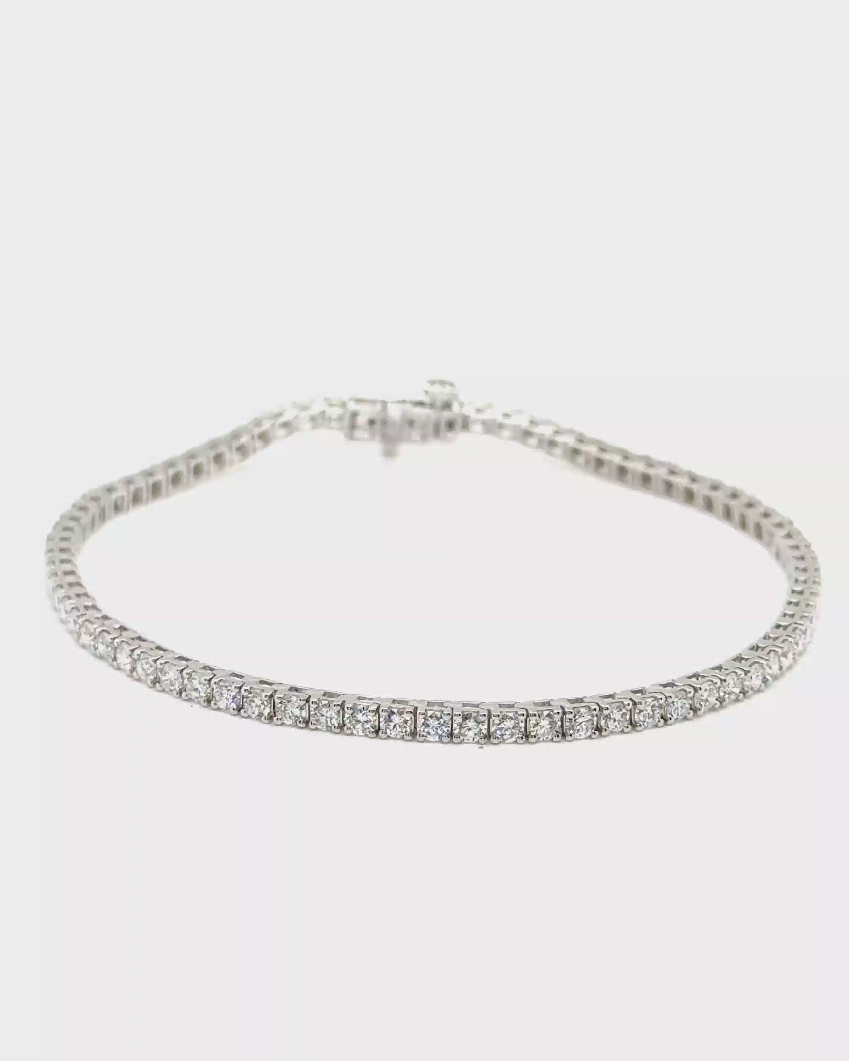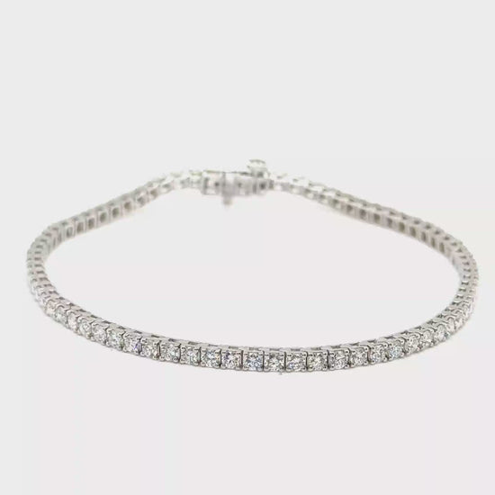 Elegant and versatile, this 14K white gold tennis bracelet features 3.00 carats of sparkling round diamonds in a classic four-prong setting. Perfect for everyday luxury or gifting someone special.