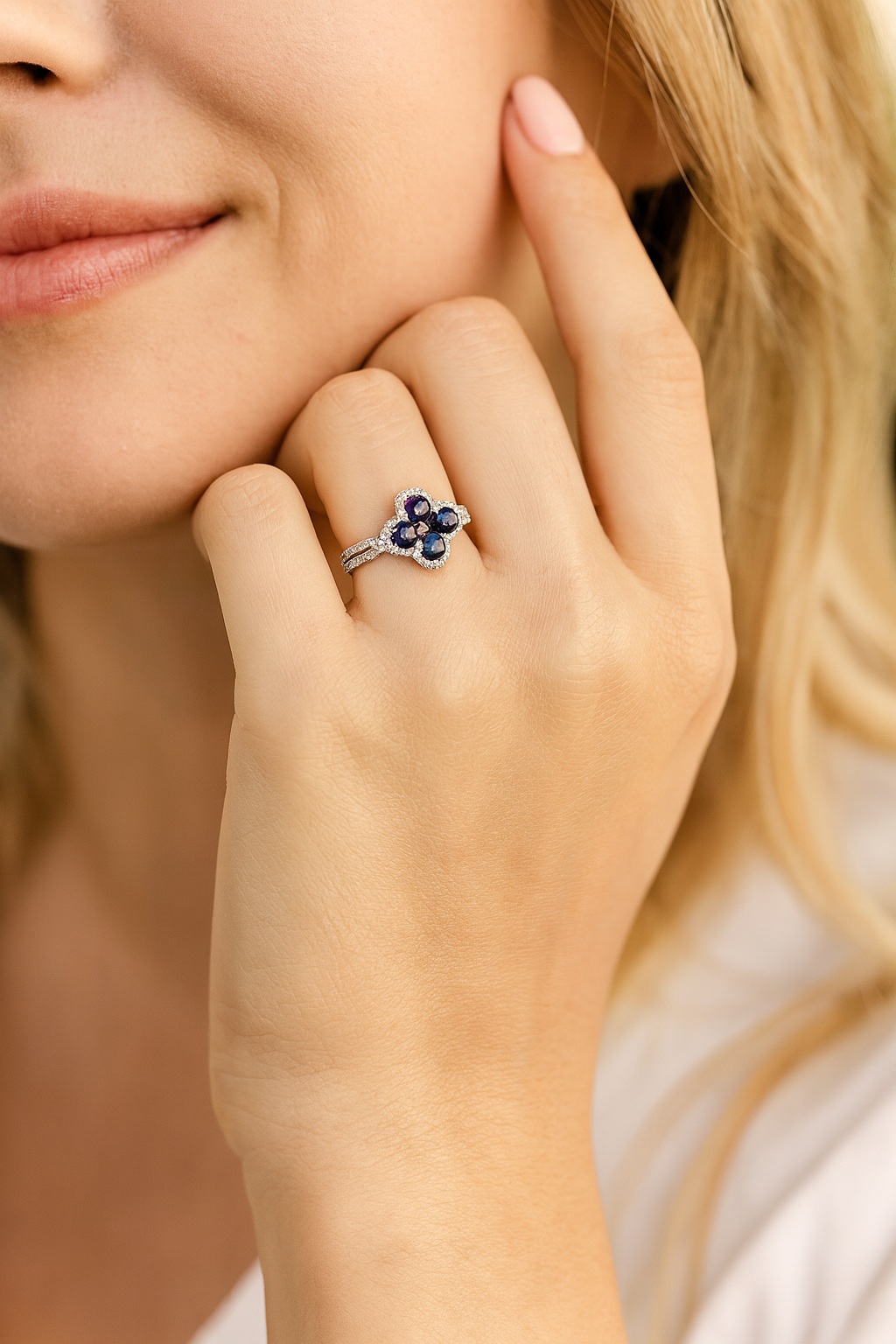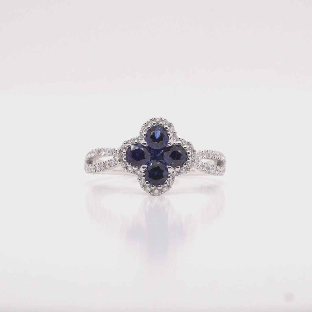 Bague en or blanc 18 carats avec 0,85 ct de saphirs et 0,38 ct de diamants comme pierres latérales.
