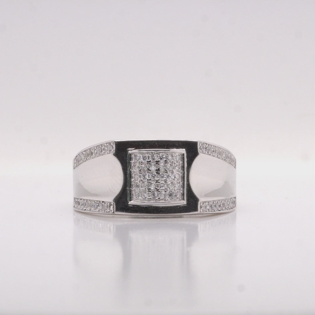 Bague en argent pour homme avec pierres latérales en oxyde de zirconium