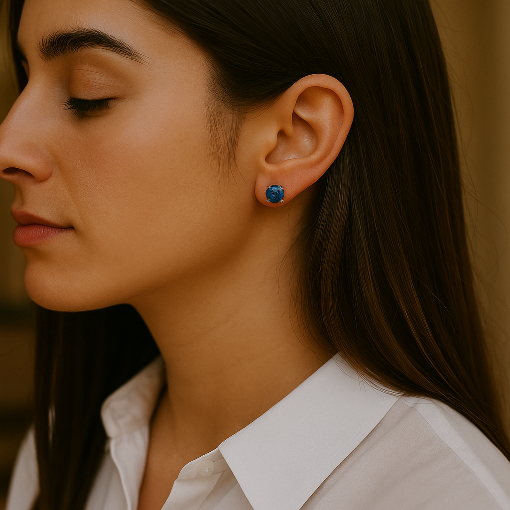 0.74 Carat Genuine Blue Diamond 14K White Gold Earrings