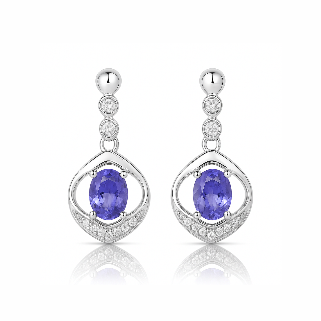 Indulge in the allure of our 0.76 Carat Genuine Tanzanite and White Diamond Earrings. Set in elegant 14K white gold, these earrings showcase the mesmerizing beauty of genuine tanzanite, capturing attention with its vivid blue-purple hue. The carefully placed white diamonds add a touch of brilliance, creating a harmonious blend of sophistication and glamour. Elevate your style effortlessly with these exquisite earrings—a perfect accessory for any occasion.