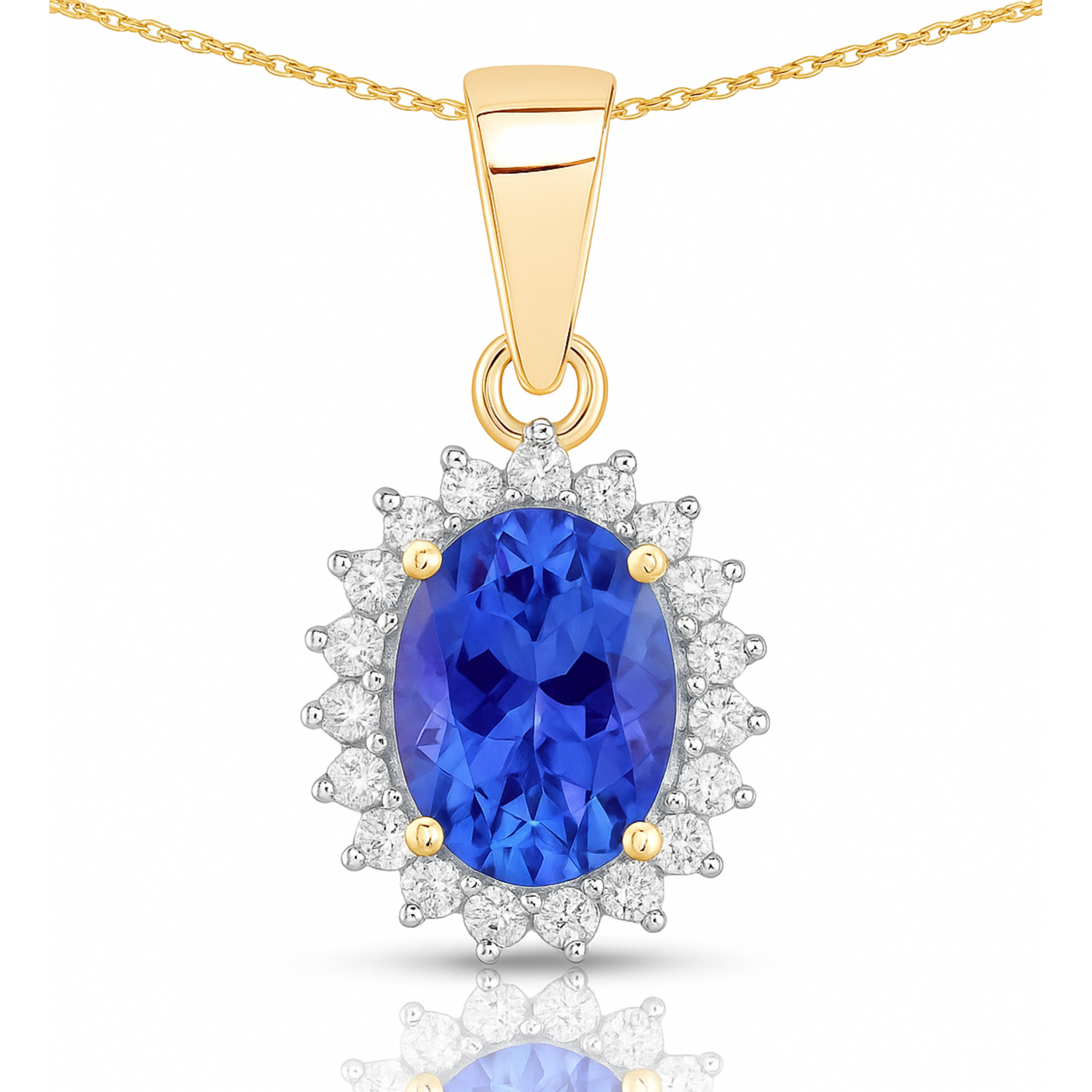 0.86 Carat Genuine Tanzanite and White Diamond 14K Yellow Gold Pendant