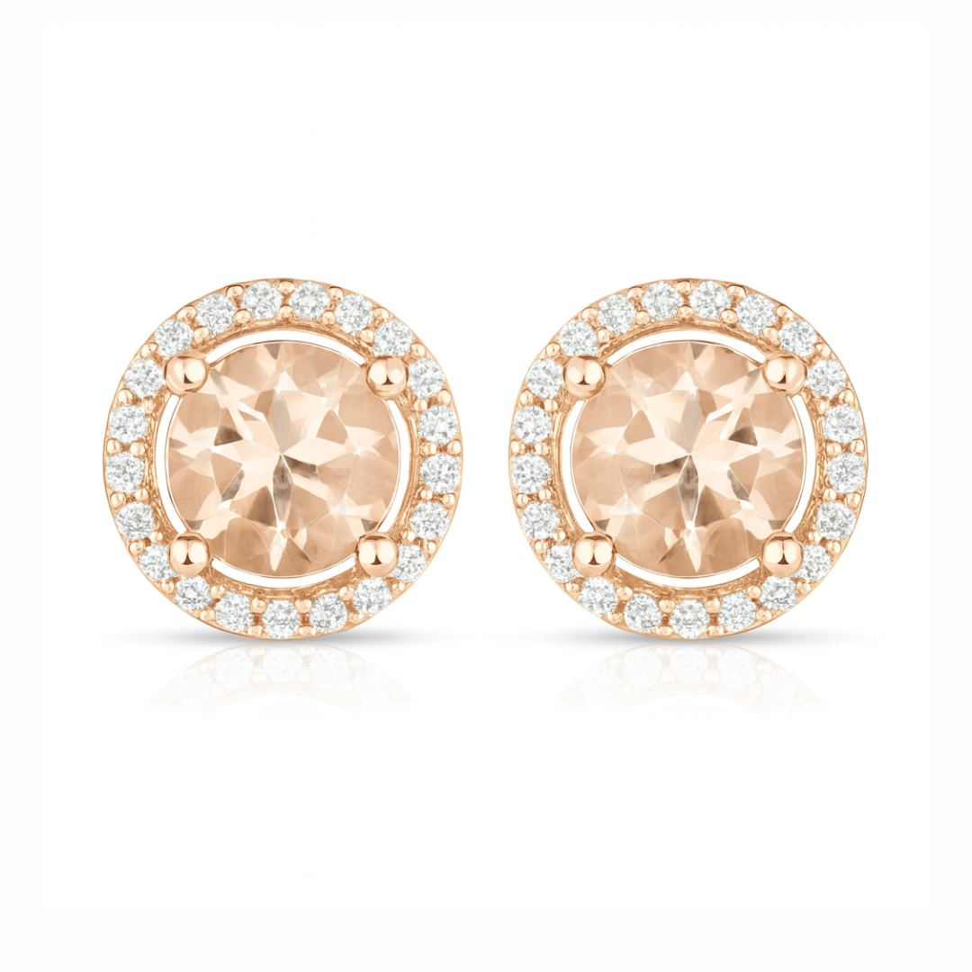 Discover timeless elegance with our 0.93 Carat Genuine Morganite and White Diamond Earrings in 14K Rose Gold. The genuine morganite gemstones, totaling 0.93 carats, exude a soft and enchanting peach-pink glow. Set in warm rose gold, these earrings are adorned with delicate white diamonds, adding a touch of brilliance and sophistication. Elevate your style effortlessly with these captivating earrings—a perfect blend of grace and luxury for any occasion.