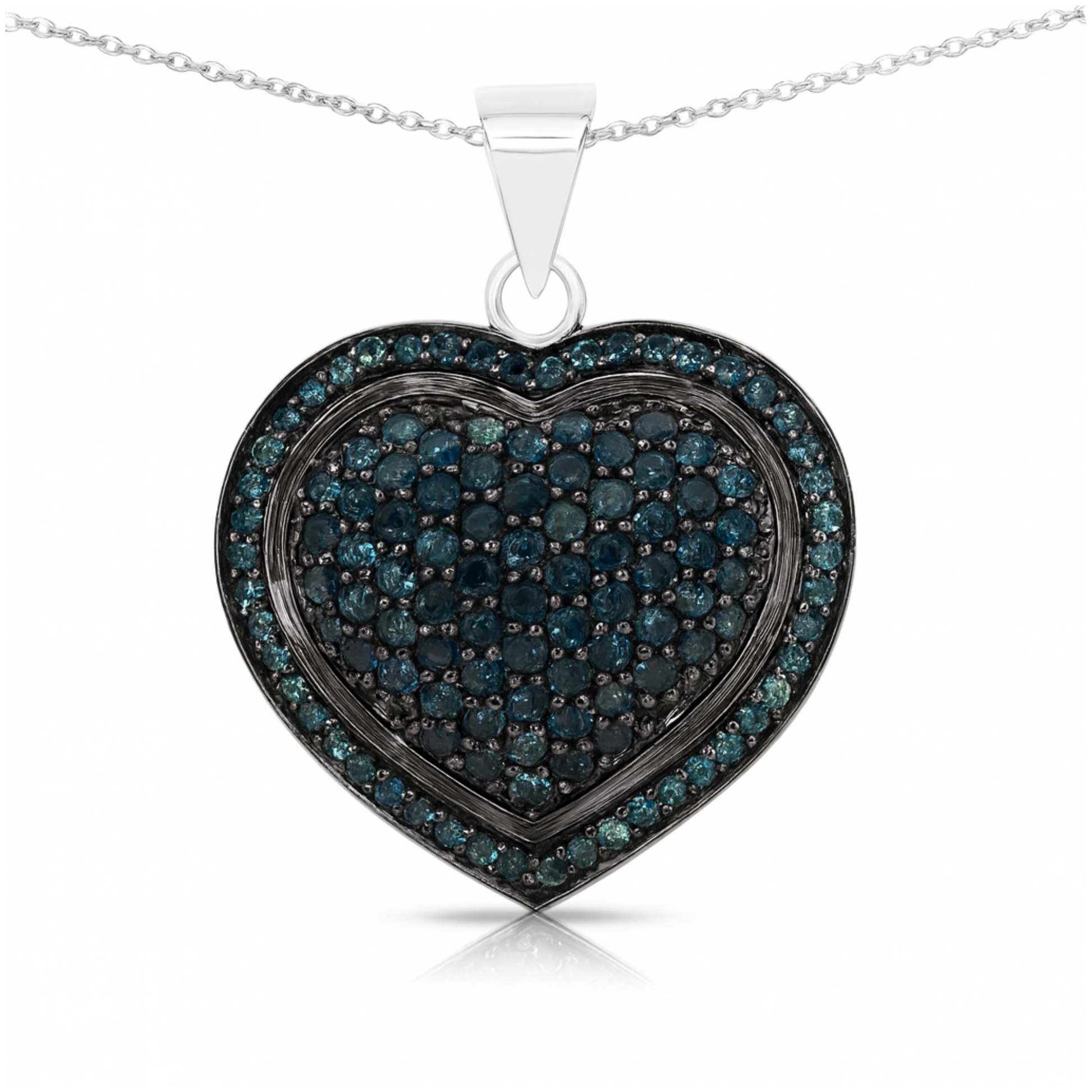 Fall in love with our exquisite Genuine Blue Diamond .925 Sterling Silver Heart Pendant. This stunning pendant features 137 shimmering stones, including 1.25 carats of natural blue diamonds, set in high-quality .925 sterling silver with a rhodium finish. The pendant hangs gracefully from a cable chain and is perfect for adding a touch of elegance to any outfit. Plus, it's the perfect gift for April birthdays. Shop now and make this timeless piece yours!