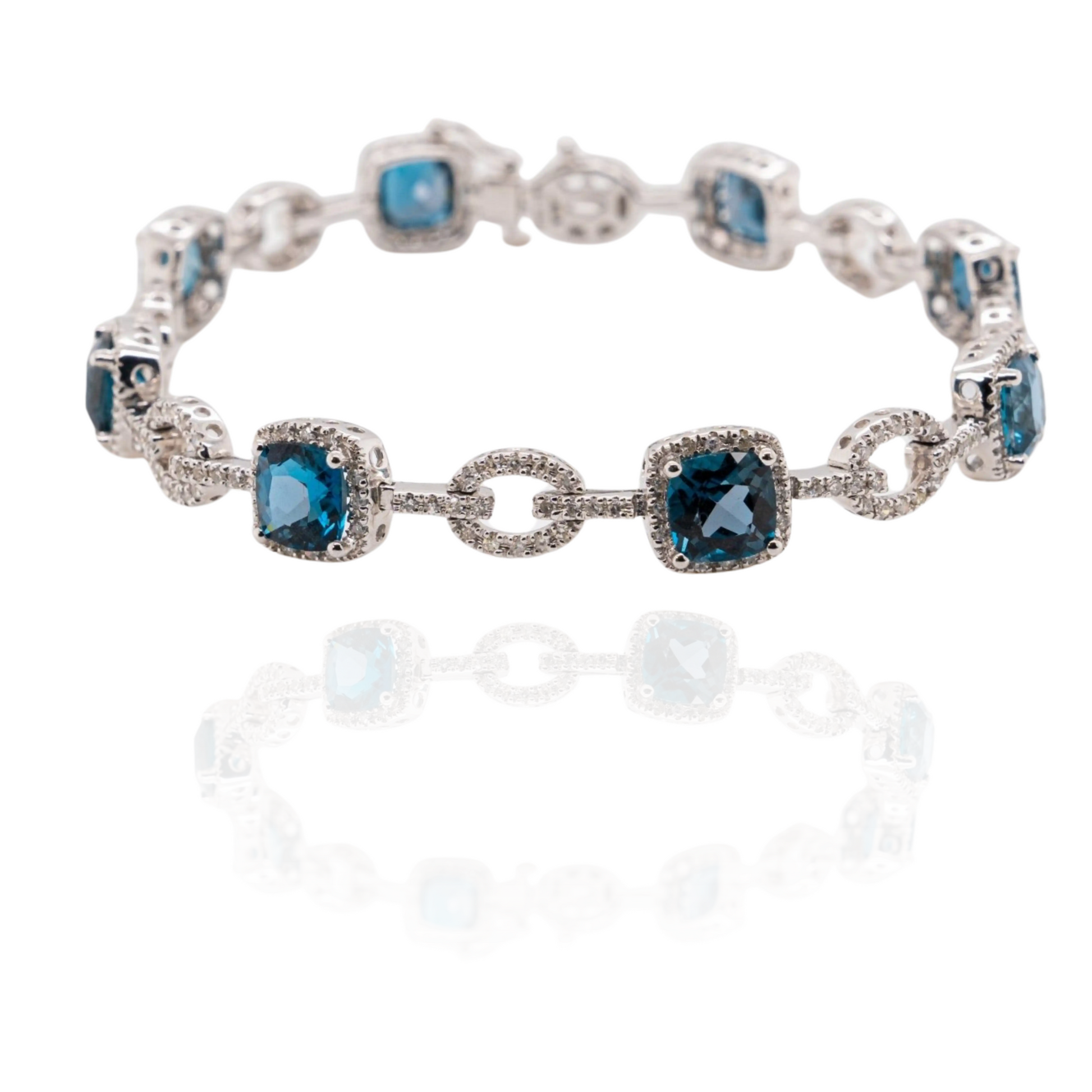 Blue Topaz & Natural Diamonds Bracelet in 14K White Gold Bracelet