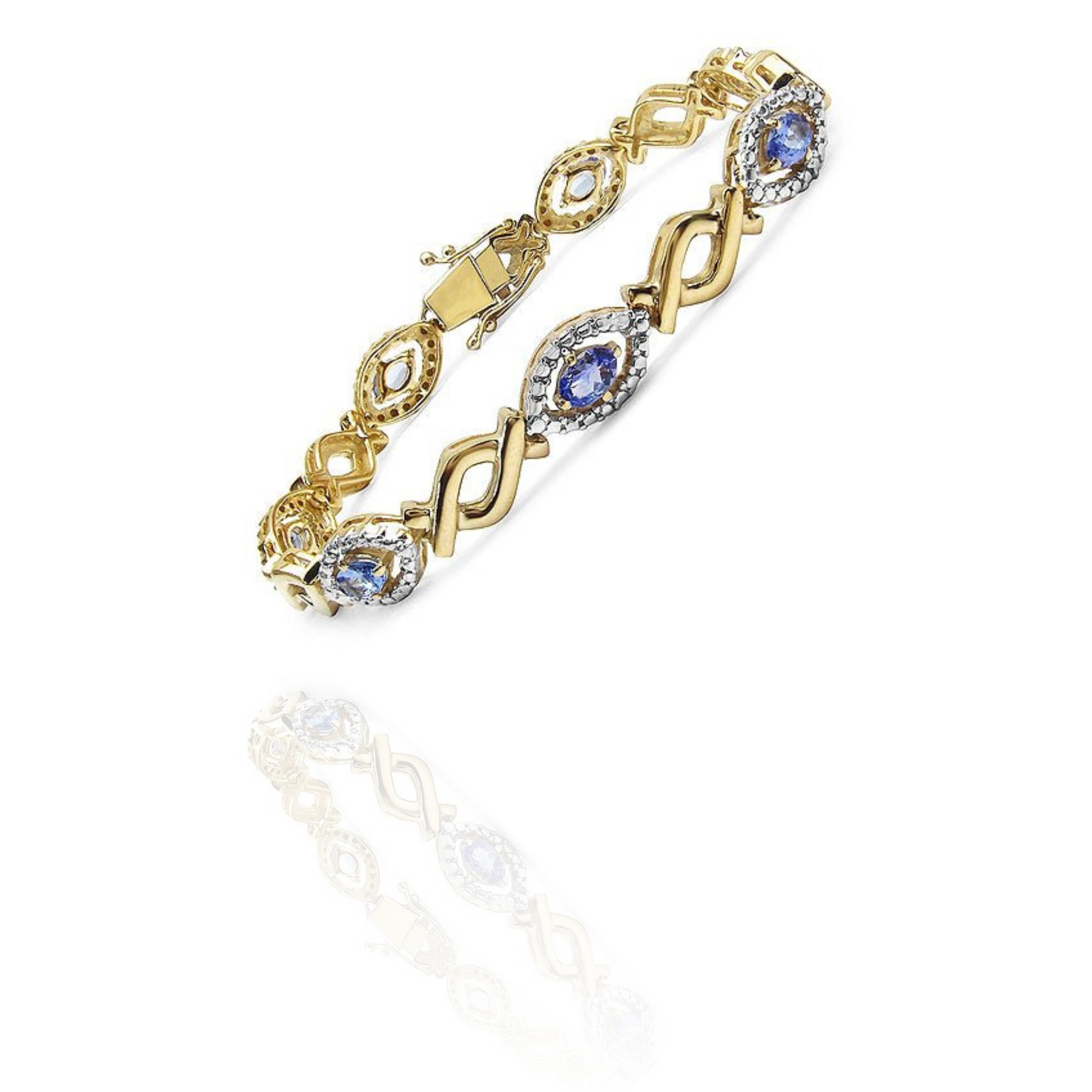 14K Yellow Gold Plated 3.08 Carat Genuine Tanzanite .925 Sterling Silver Bracelet