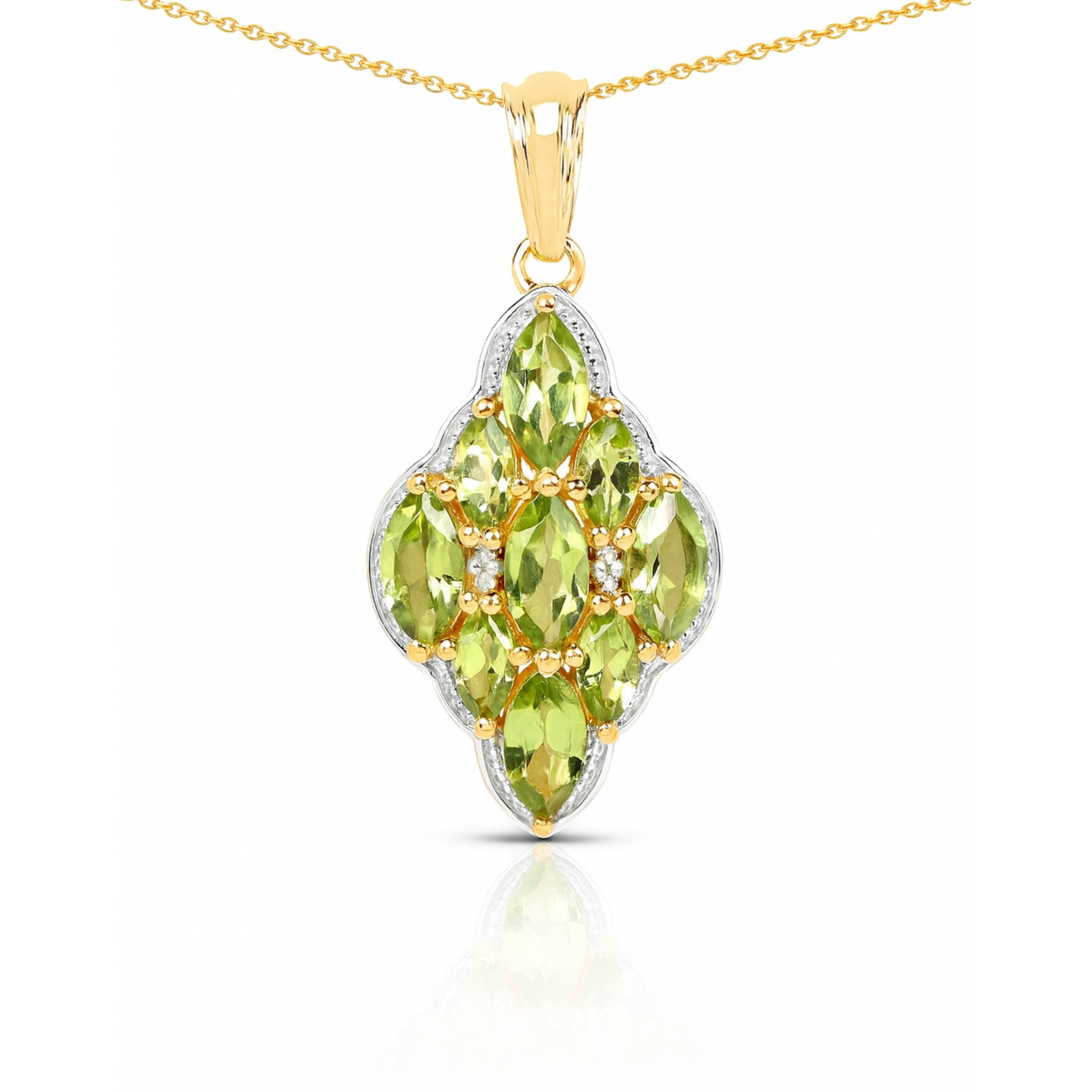 14K Yellow Gold Plated 4.02 Carat Genuine Peridot & White Topaz .925 Sterling Silver Pendant