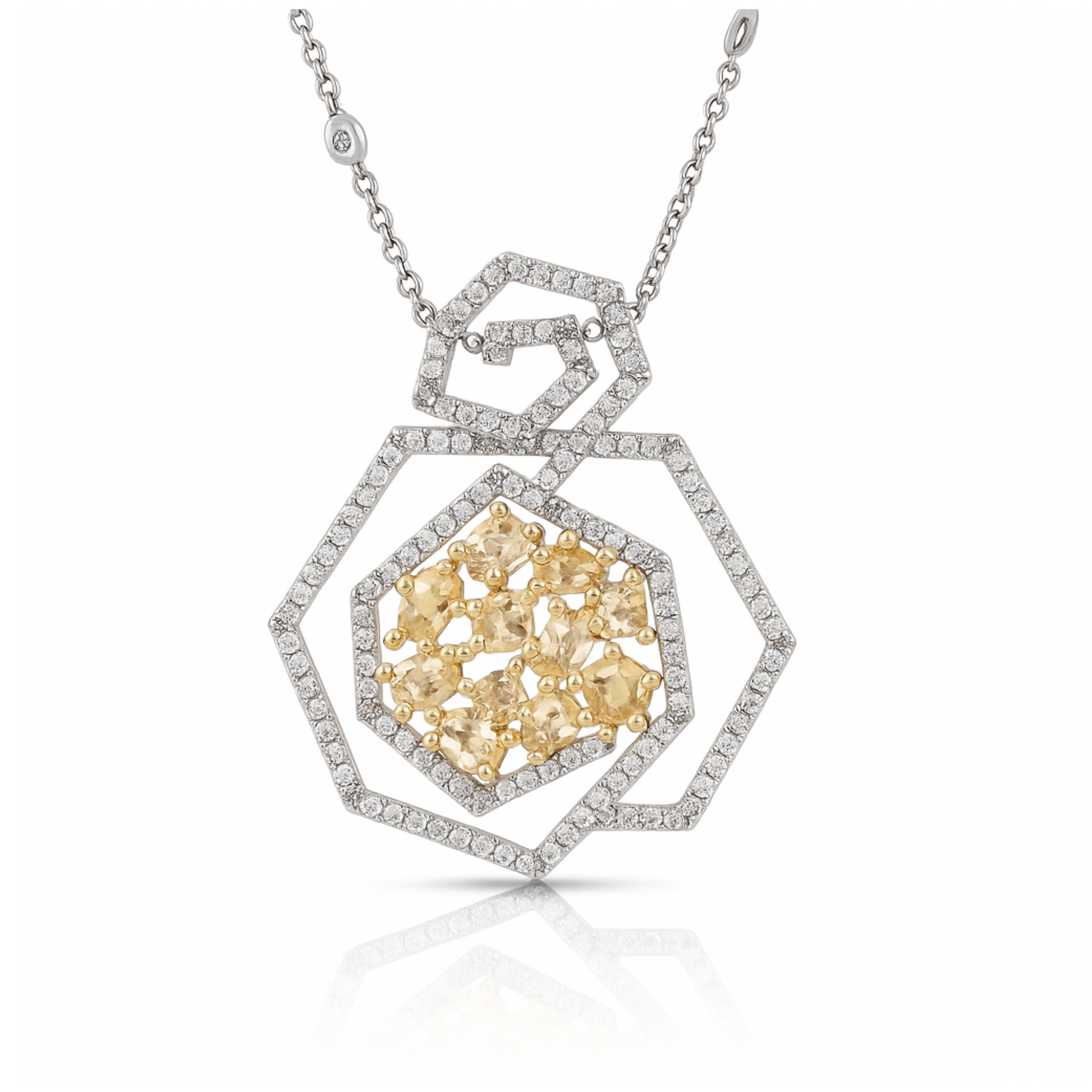 Presenting an extraordinary masterpiece of luxury and radiance: our 18KW White Gold Pendant adorned with a mesmerizing 2.16 carat yellow diamond and accompanied by dazzling sidestone diamonds totaling 1.98 carats. This pendant encapsulates the essence of opulence and sophistication in a single, breathtaking piece.