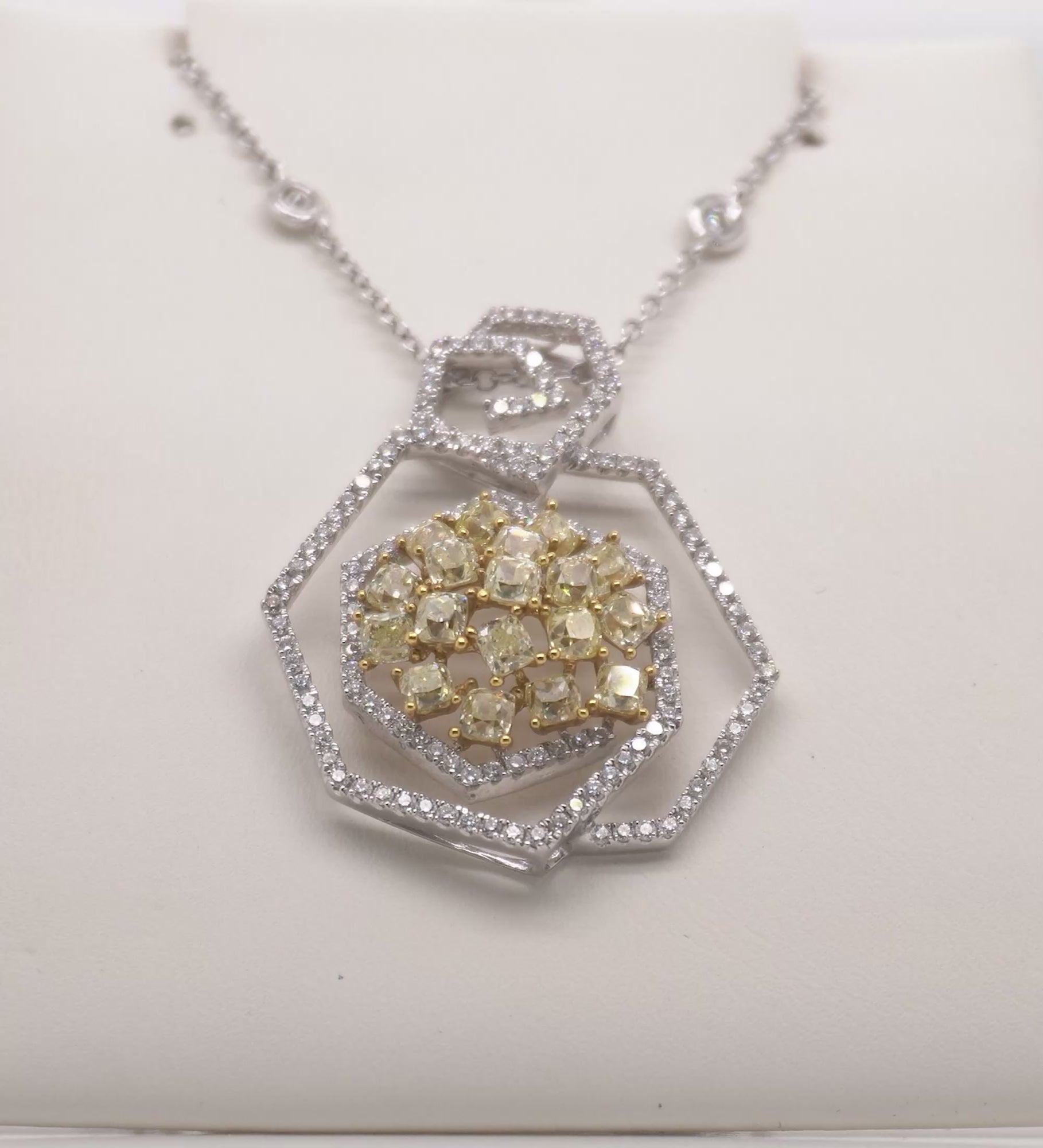 18 KW White gold with 2.16 ct Yellow Diamond & 1.98 ct Sidestone Diamond Pendant
