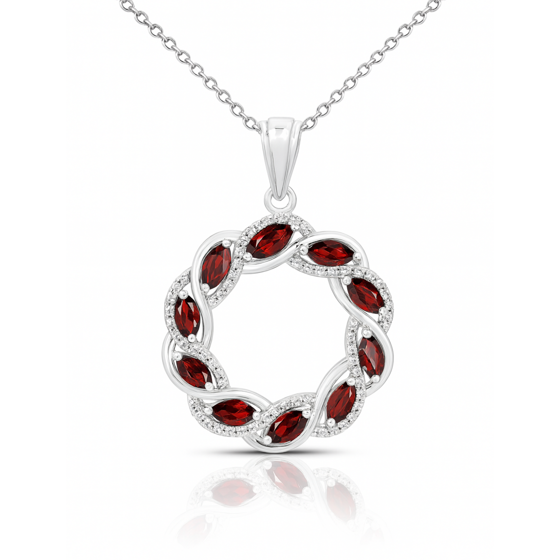 2.33 Carat Genuine Garnet and White Topaz .925 Sterling Silver Pendant