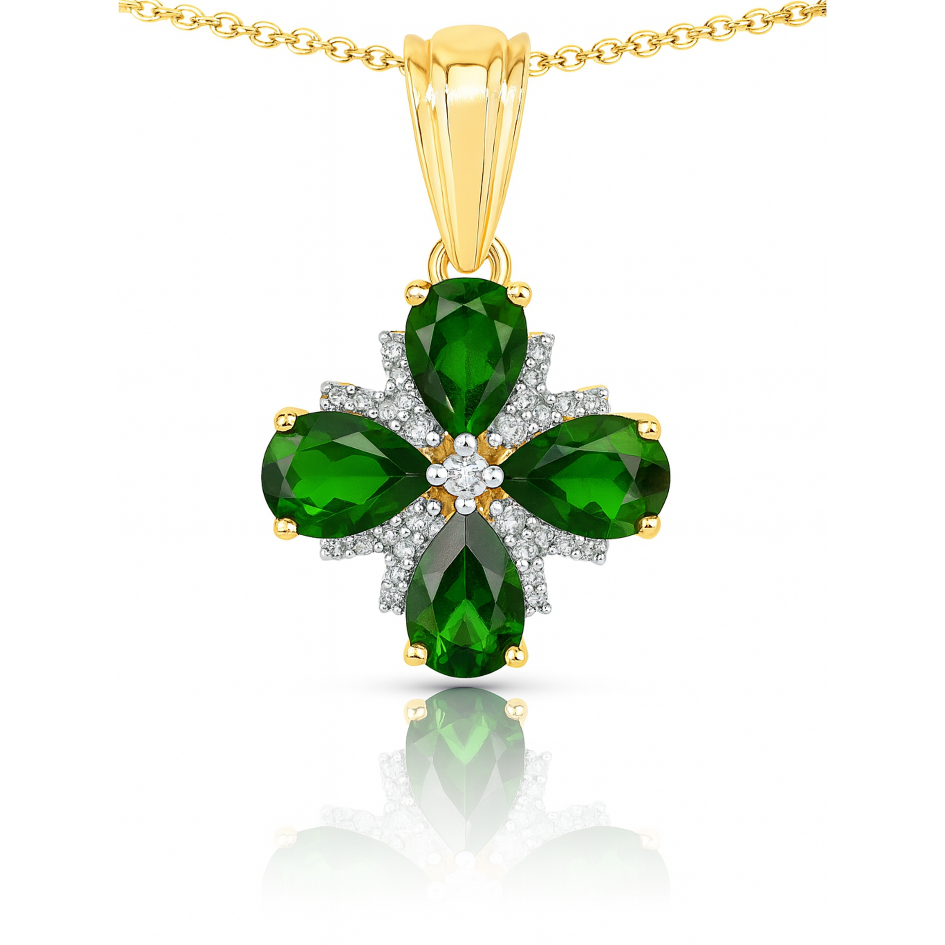 2.70 Carat Genuine Chrome Diopside and White Topaz .925 Sterling Silver Pendant