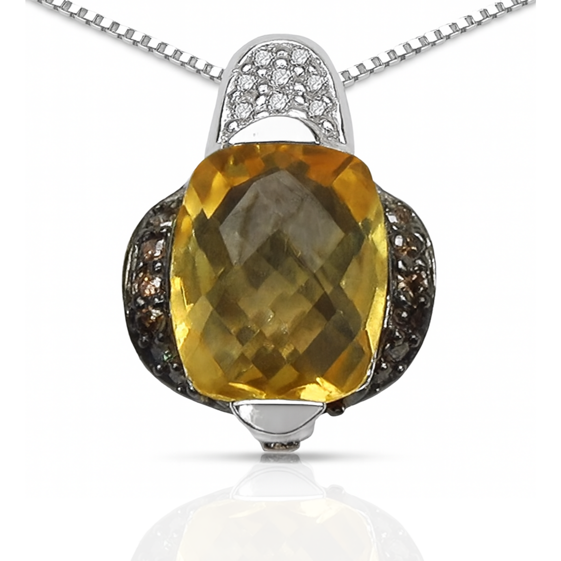 2.91 Carat Genuine Citrine, Champagne Diamond & White Diamond .925 Sterling Silver Pendant
