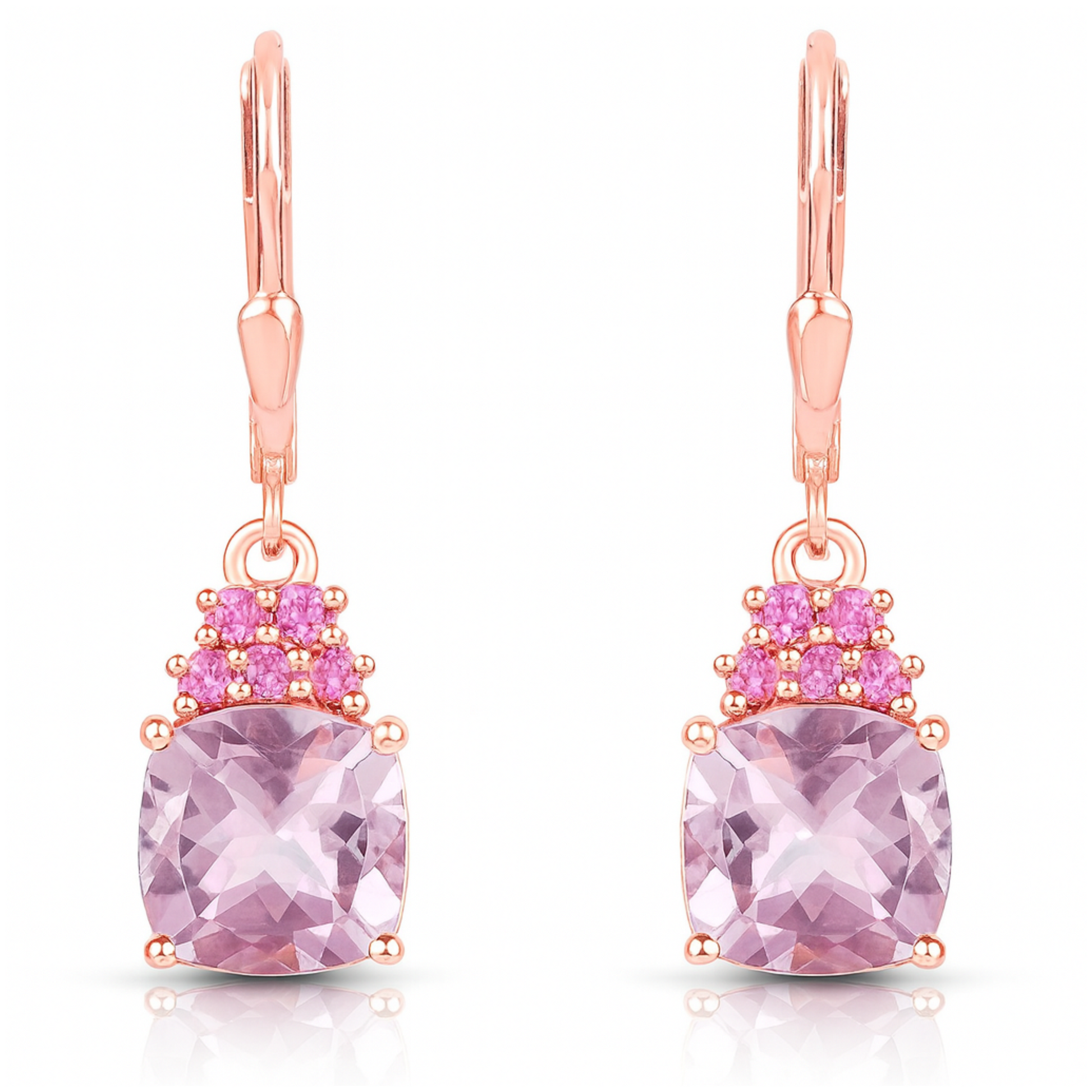 4.90 Carat Genuine Pink Amethyst and Rhodolite .925 Sterling Silver Earrings