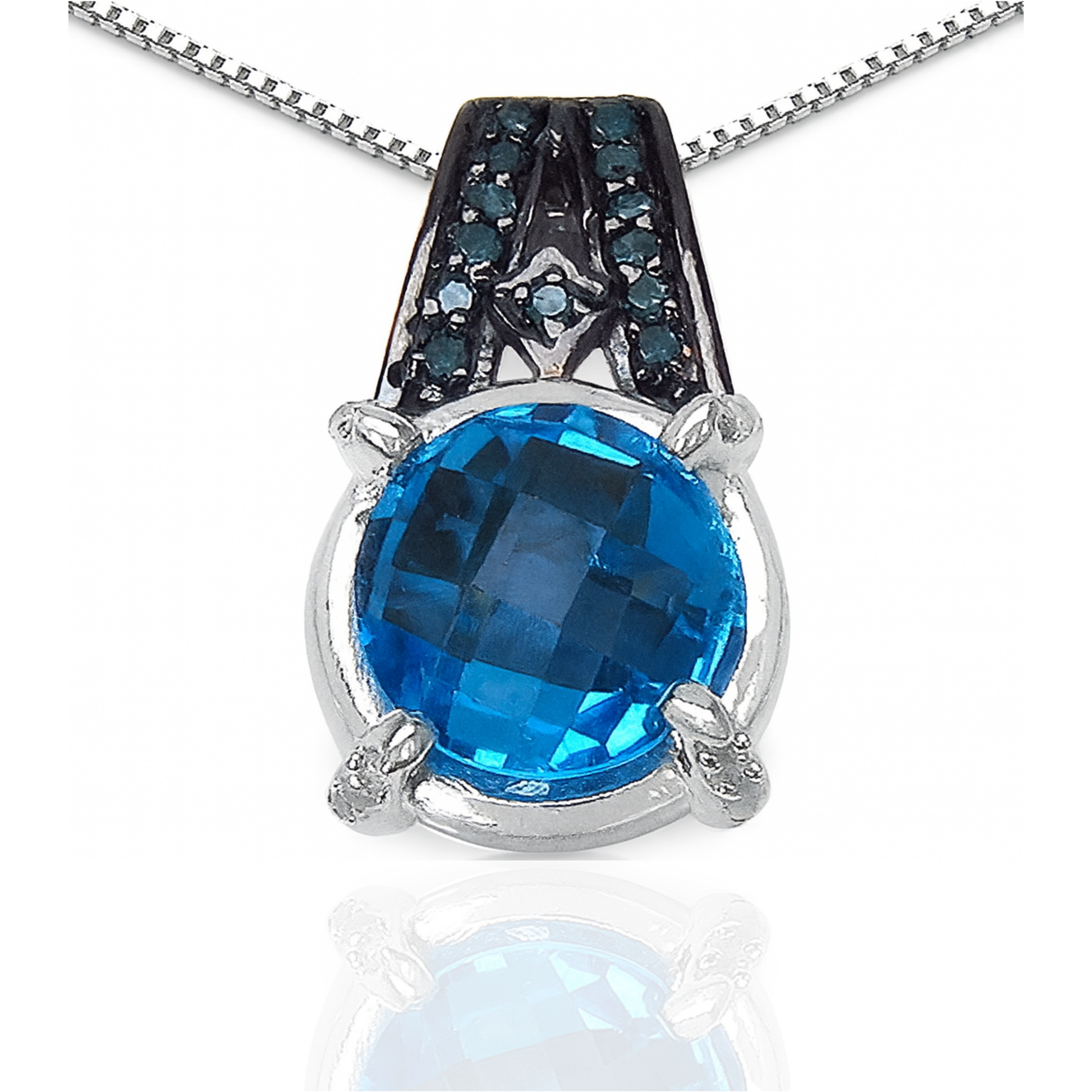 4.94 Carat Genuine Swiss Blue Topaz, Blue Diamond & White Diamond .925 Sterling Silver Pendant