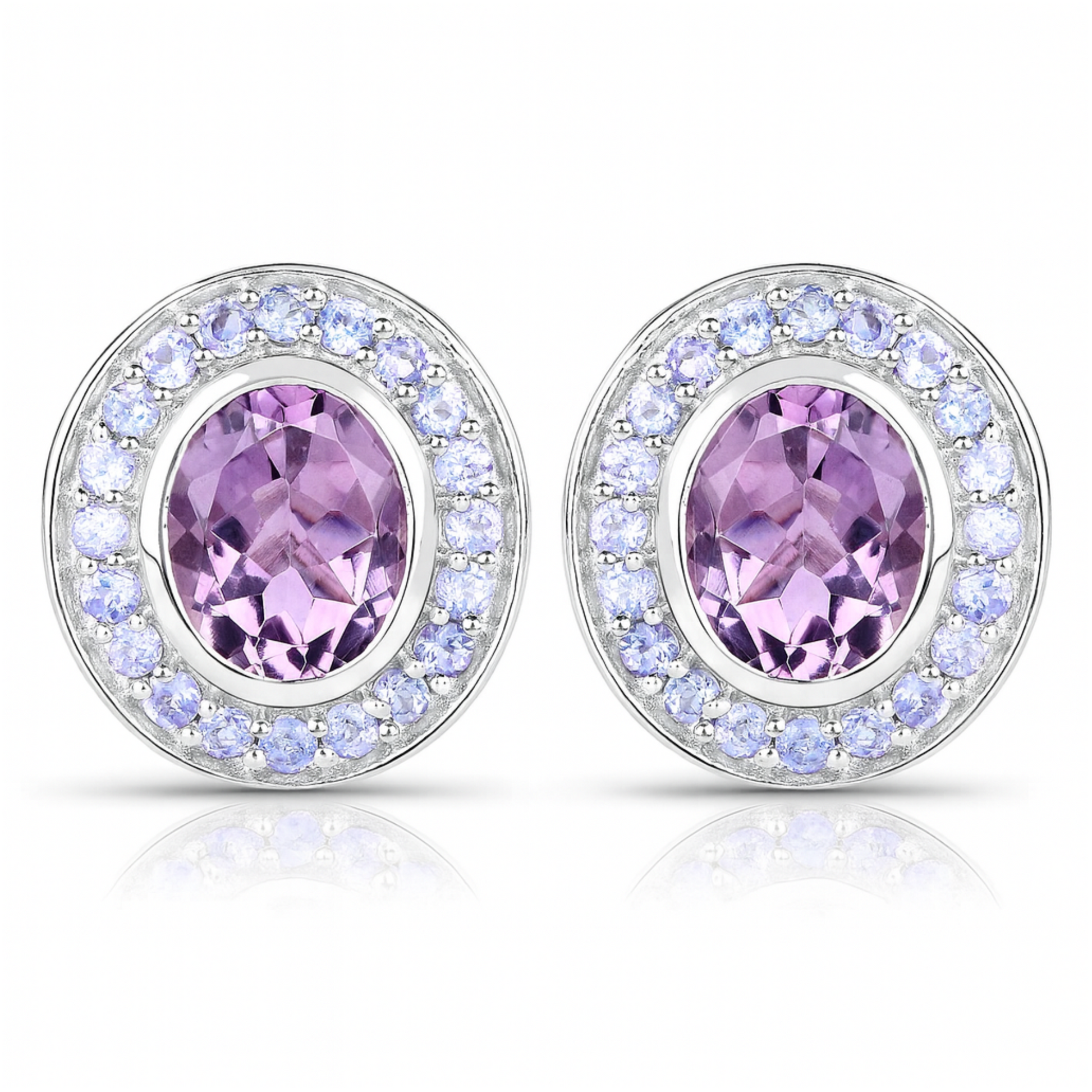 5.50 Carat Genuine Amethyst and Tanzanite .925 Sterling Silver Earrings