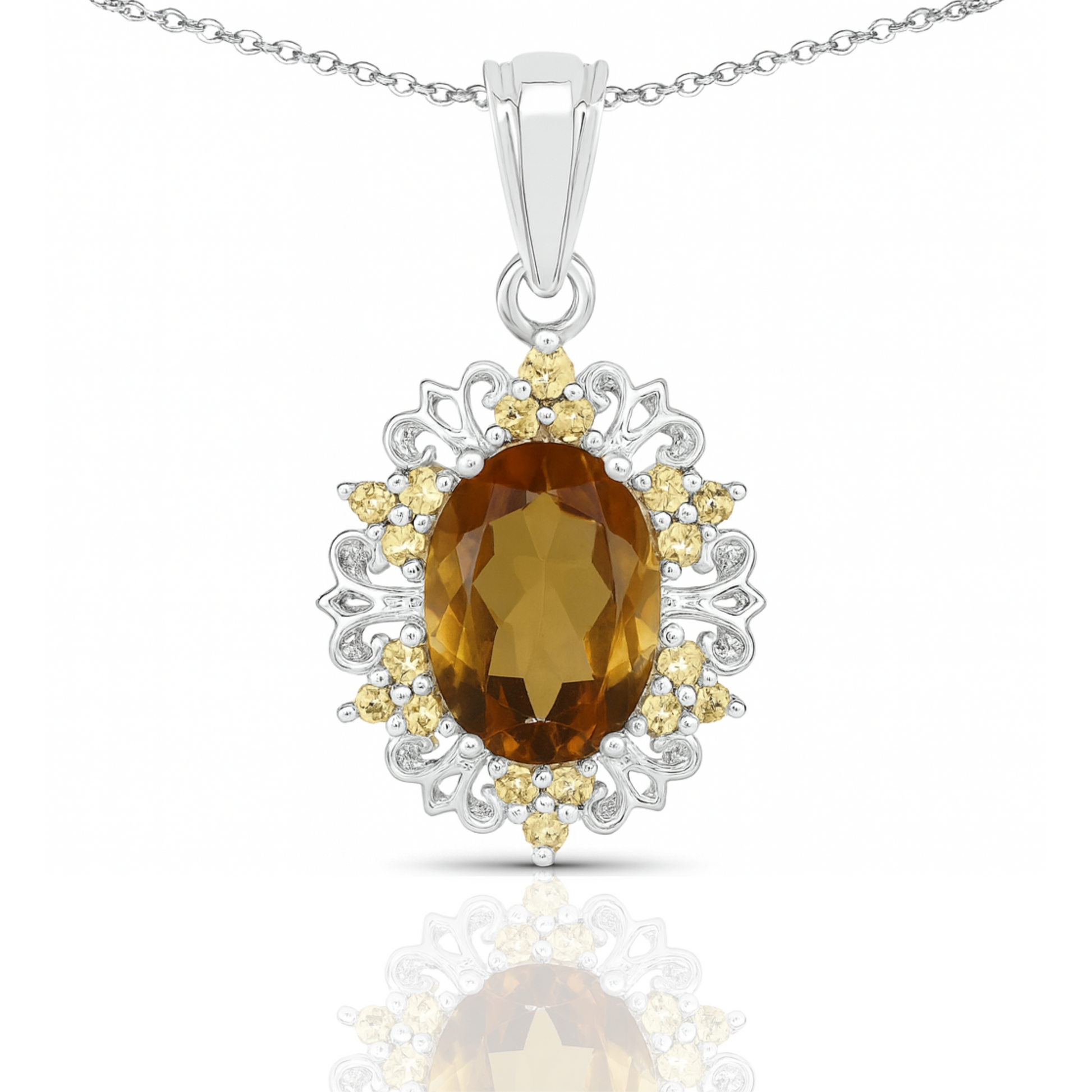 5.71 Carat Genuine Champagne Quartz and Citrine .925 Sterling Silver Pendant