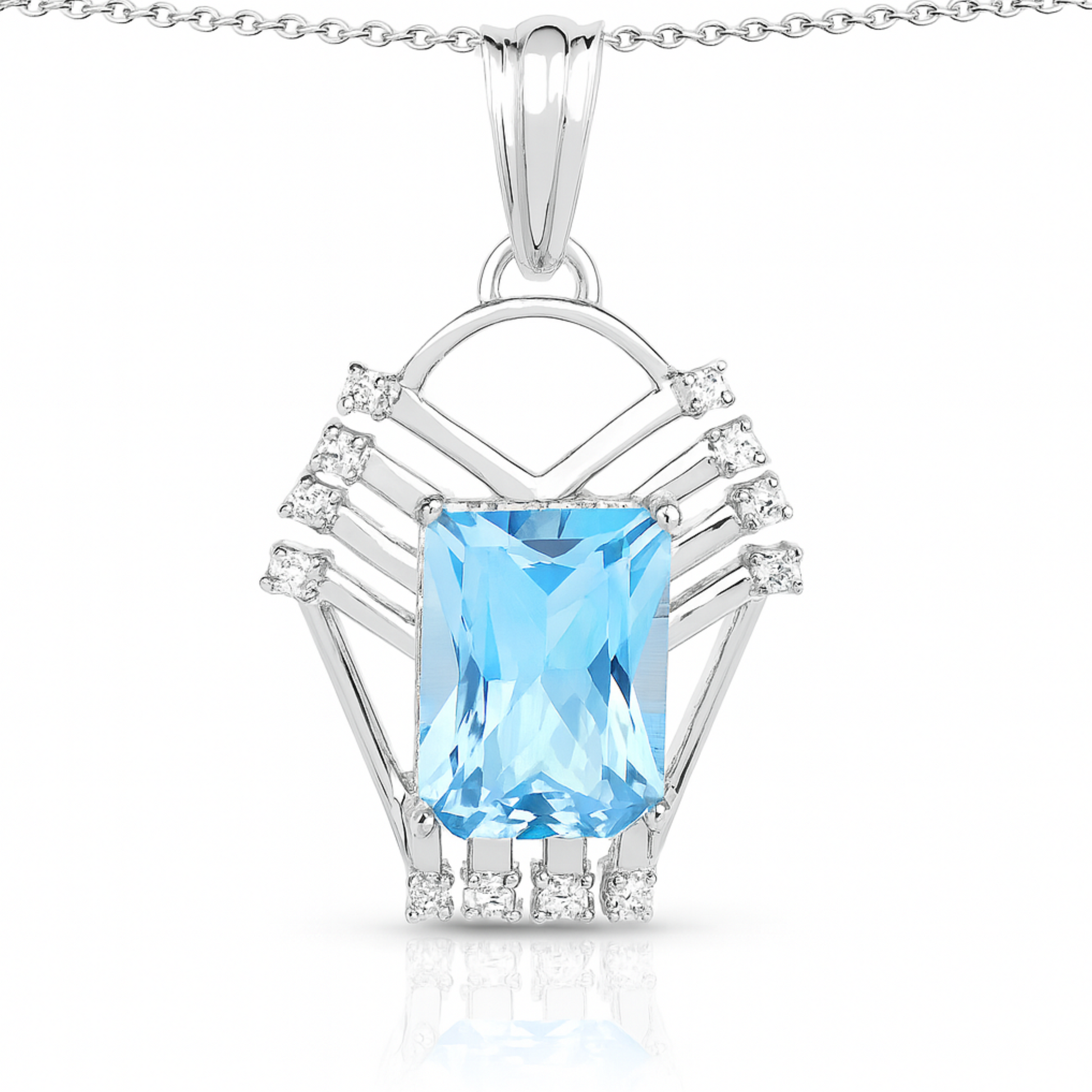 5.76 Carat Genuine Swiss Blue Topaz & White Topaz .925 Sterling Silver Pendant