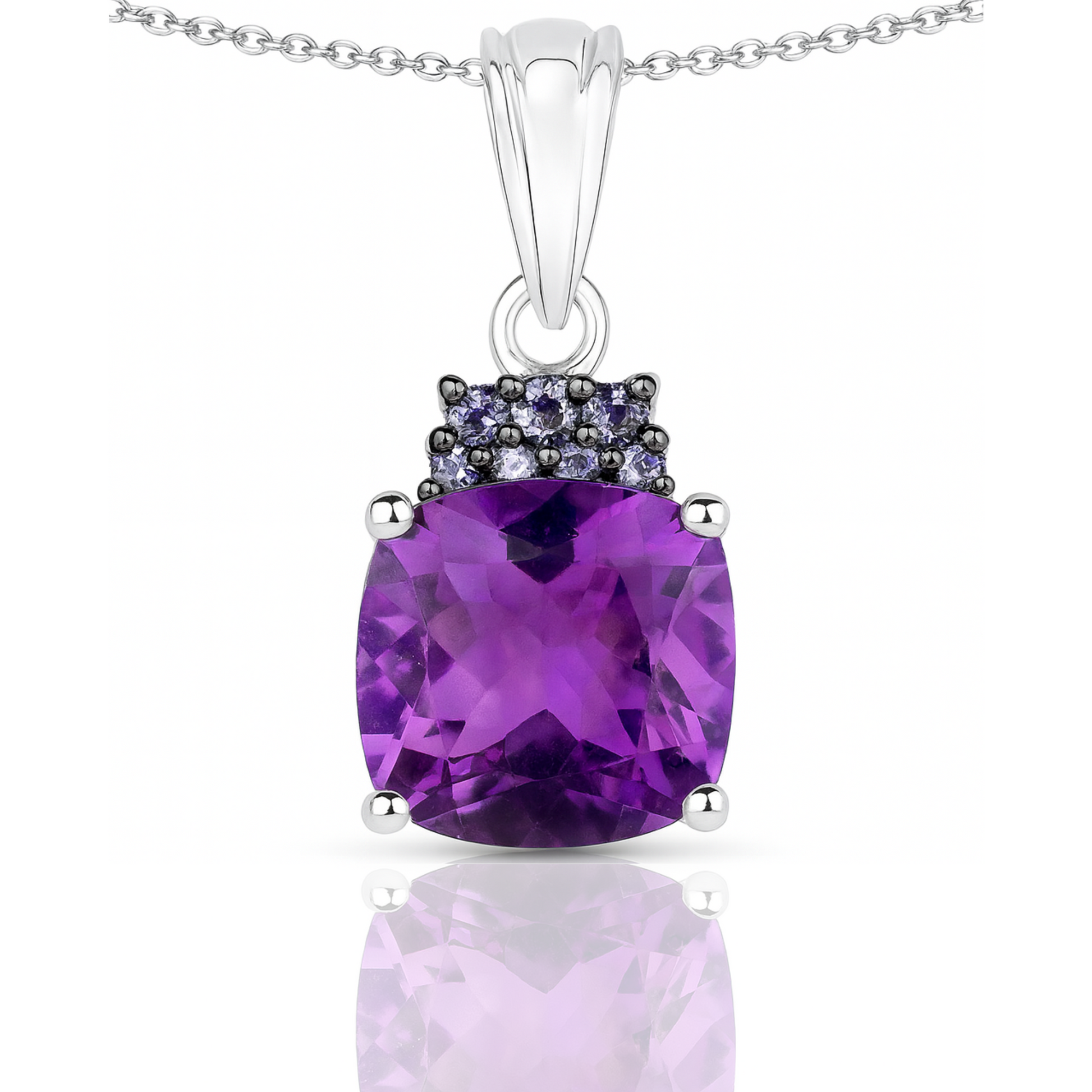 6.10 Carat Genuine Amethyst and Tanzanite .925 Sterling Silver Pendant