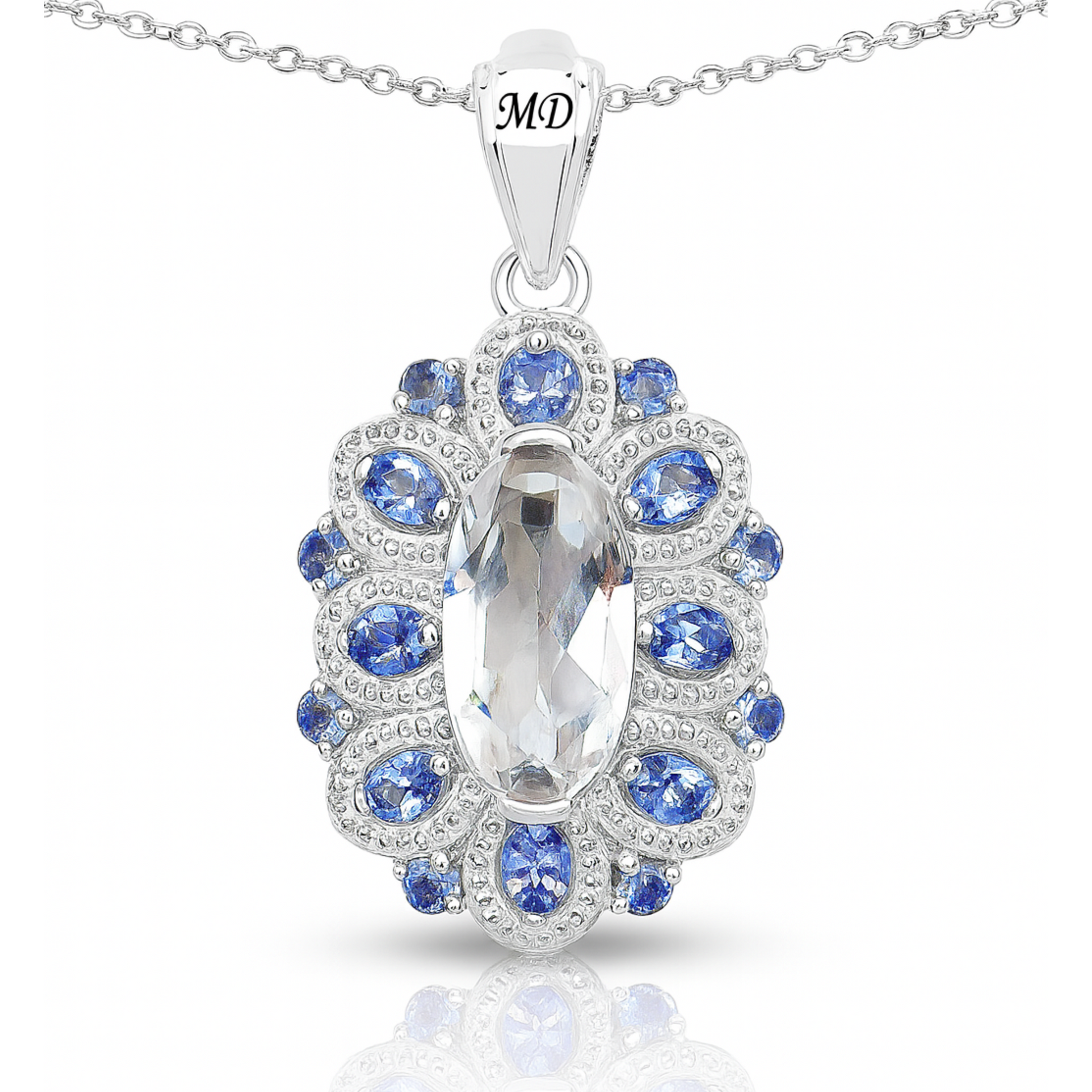 6.10 Carat Genuine Crystal Quartz, Tanzanite & White Diamond .925 Sterling Silver Pendant