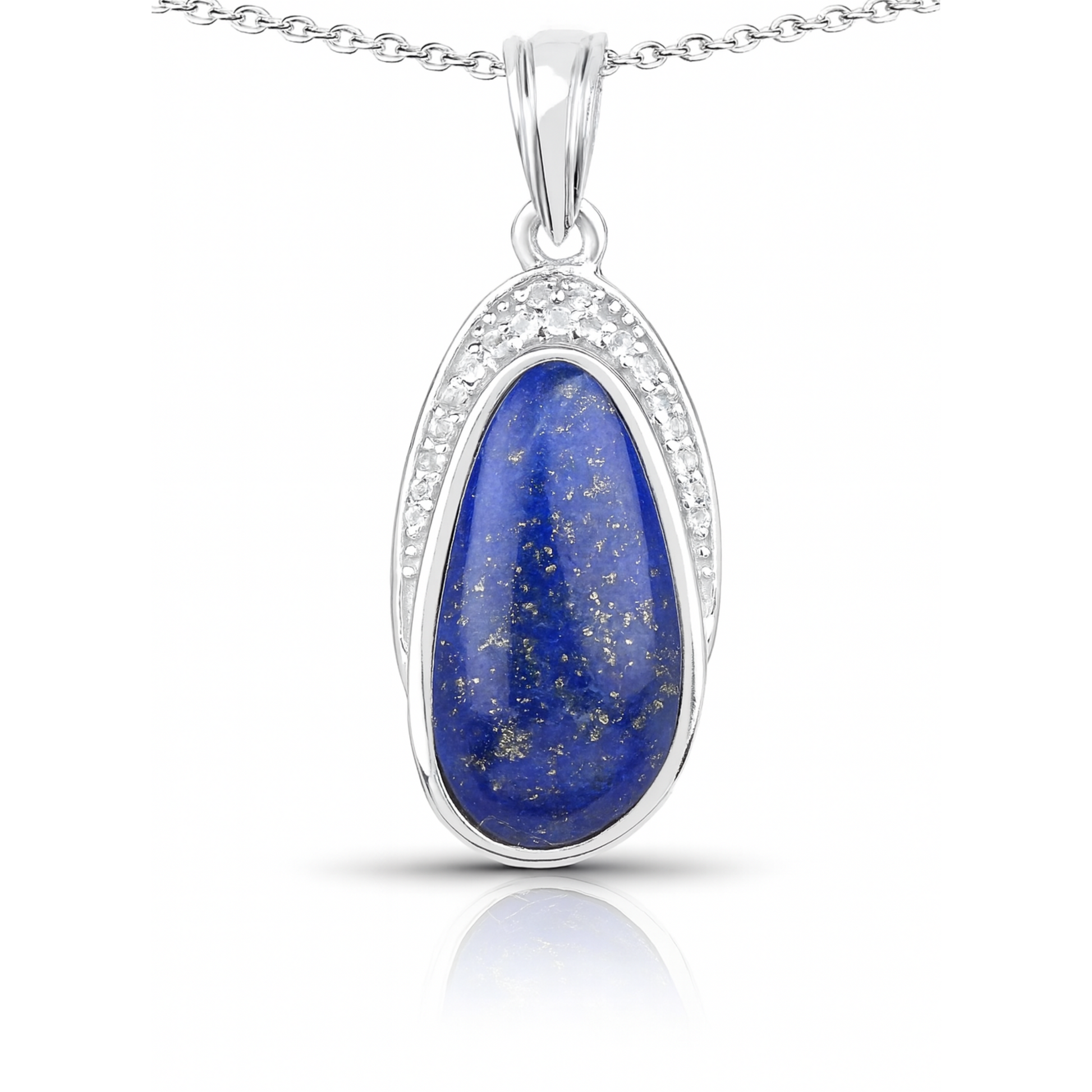 7.58 Carat Genuine Lapis And White Topaz .925 Sterling Silver Pendant