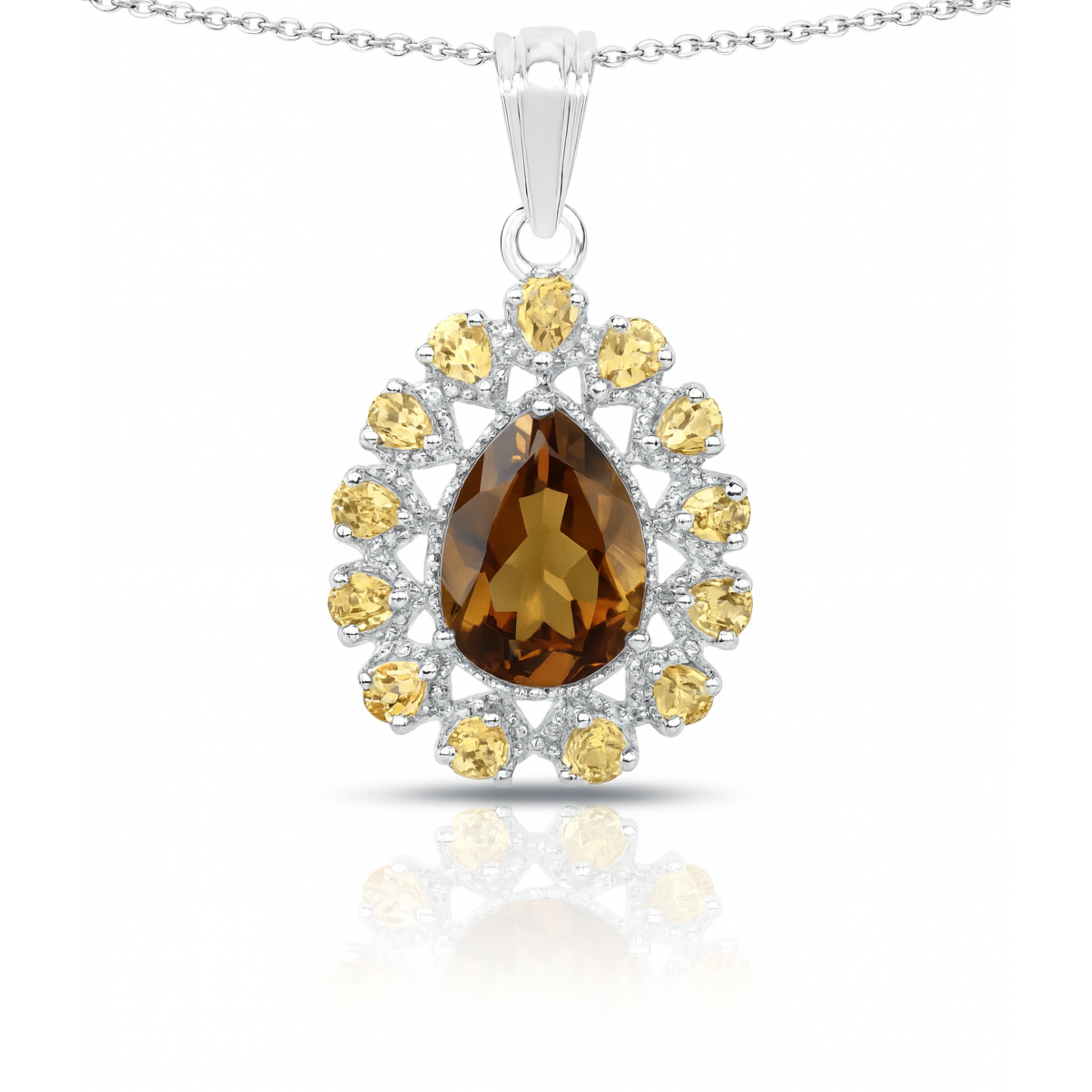7.63 Carat Genuine Champagne Quartz and Citrine .925 Sterling Silver Pendant