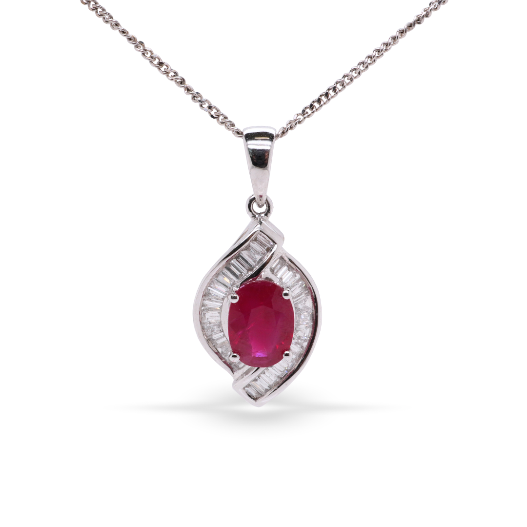 18K White Gold Necklace with 1.24ct Ruby and 0.36ct diamonds.