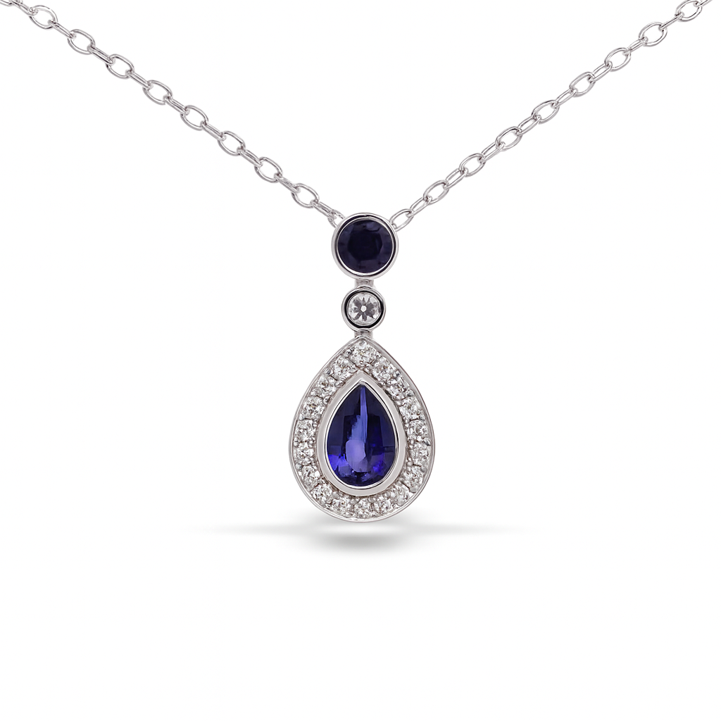 Pear-Shaped White Gold Pendant With Sapphire and Diamonds